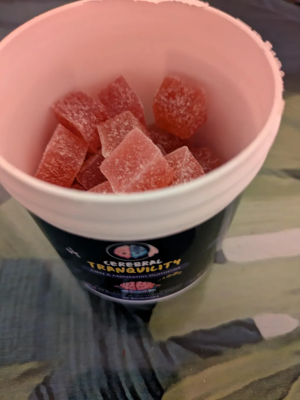 Cerebral Tranquility is a watermelon-flavored gummy (naturally flavored) containing CBN and melatonin. It is specifically designed to help those suffering from migraine by targeting common issues associated with migraine like inflammation, pain signaling, sleep disturbances, and mood instability.
